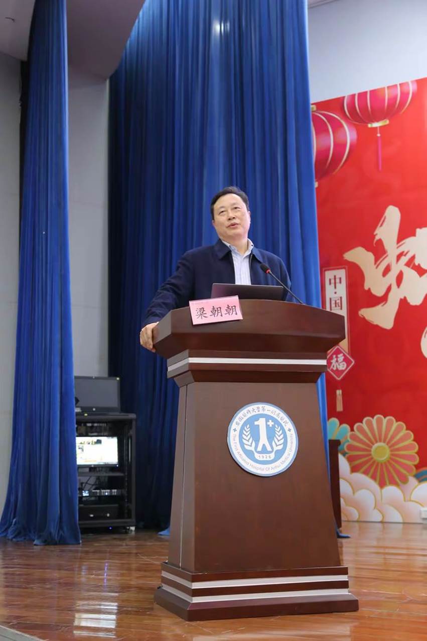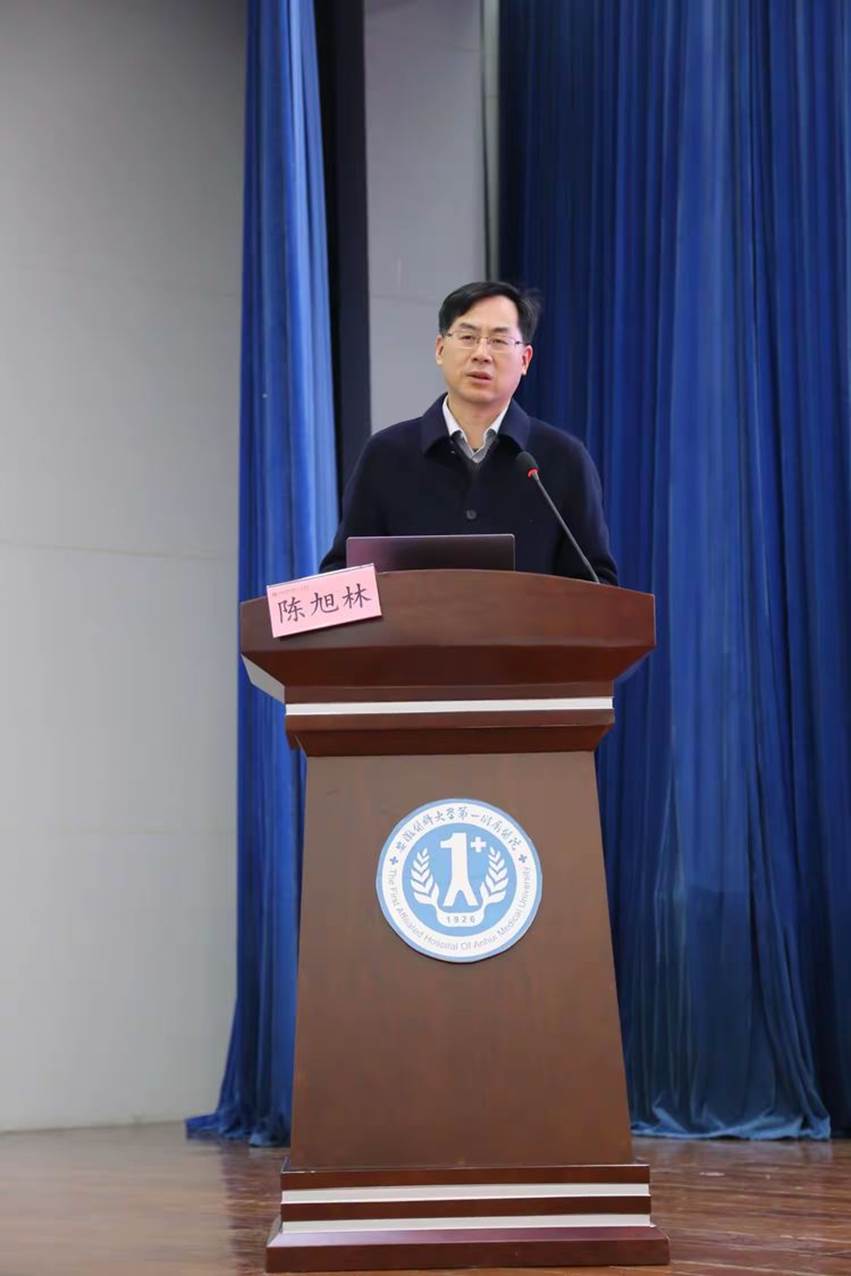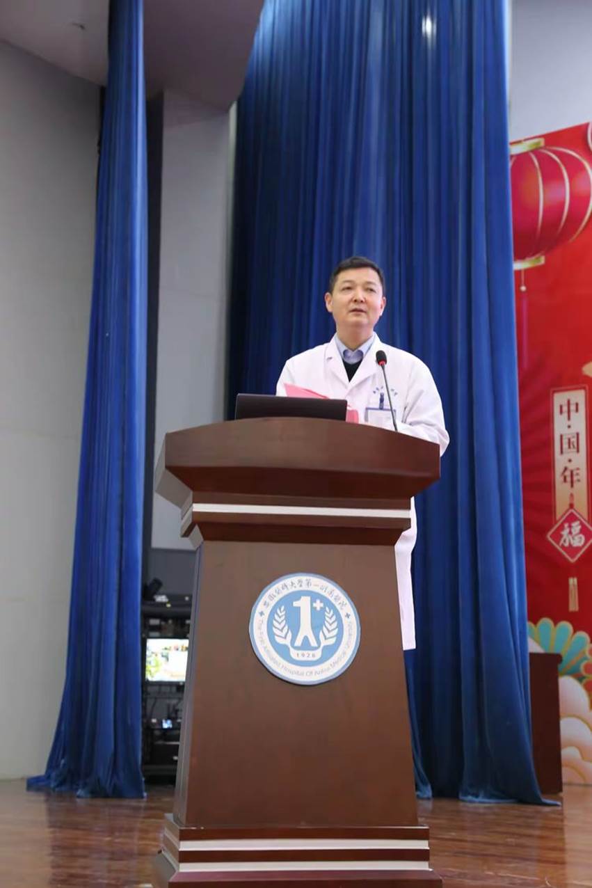 会议由安医大一附院泌尿外科科室主任郝宗耀教授进行主持,安医大一附院泌尿外科学科带头人梁朝朝教授首先进行开幕致辞,梁教授对各位莅临的领导、专家、同道、同学表示欢迎和感谢。梁教授引用“幸福的家庭总是相似的”、“年年岁岁花相似,岁岁年年人不同”两句名言,总结了全国顶级学科成功的经验,并敦促大家对比全国顶尖科室,定目标、找差距,加快泌尿外科学科建设。随后安医大一附院陈旭林副院长致辞道:首先对梁教授获评首届国家卫健委“国家杰出医师”称号表示祝贺,一附院泌尿外科在梁朝朝教授的带领下,在医疗、科研、教学、人才培养等领域取得了全面发展,值得全院其他科室学习。泌尿外科作为医院六大重点发展学科之一,医院将继续不遗余力地支持其学科发展建设,相信新的一年里泌尿外科能够再攀高峰,为健康安徽、健康中国做出更大贡献。
